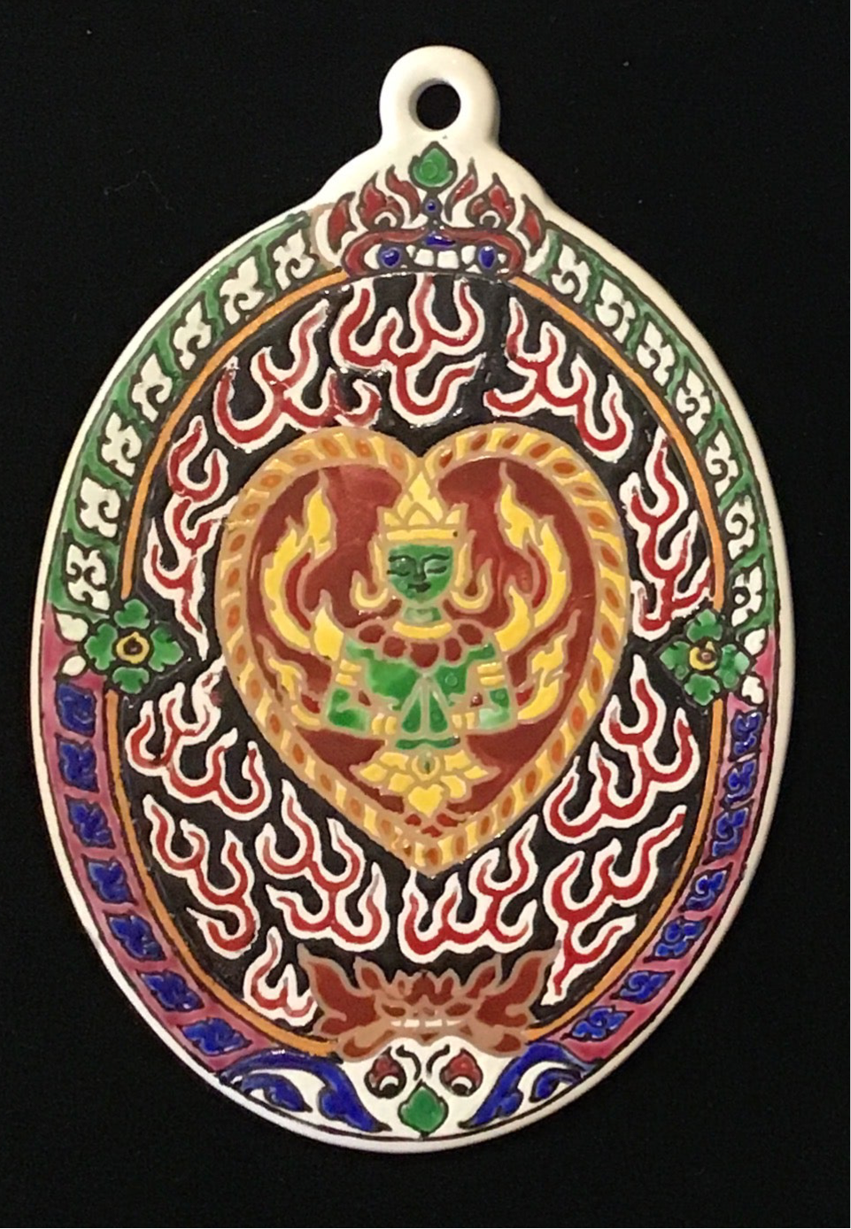 This handpainted ceramic piece is crafted by a skilled Benjarong artisan and will be delivered following an exhibition, making it a unique and valuable addition to your collection.