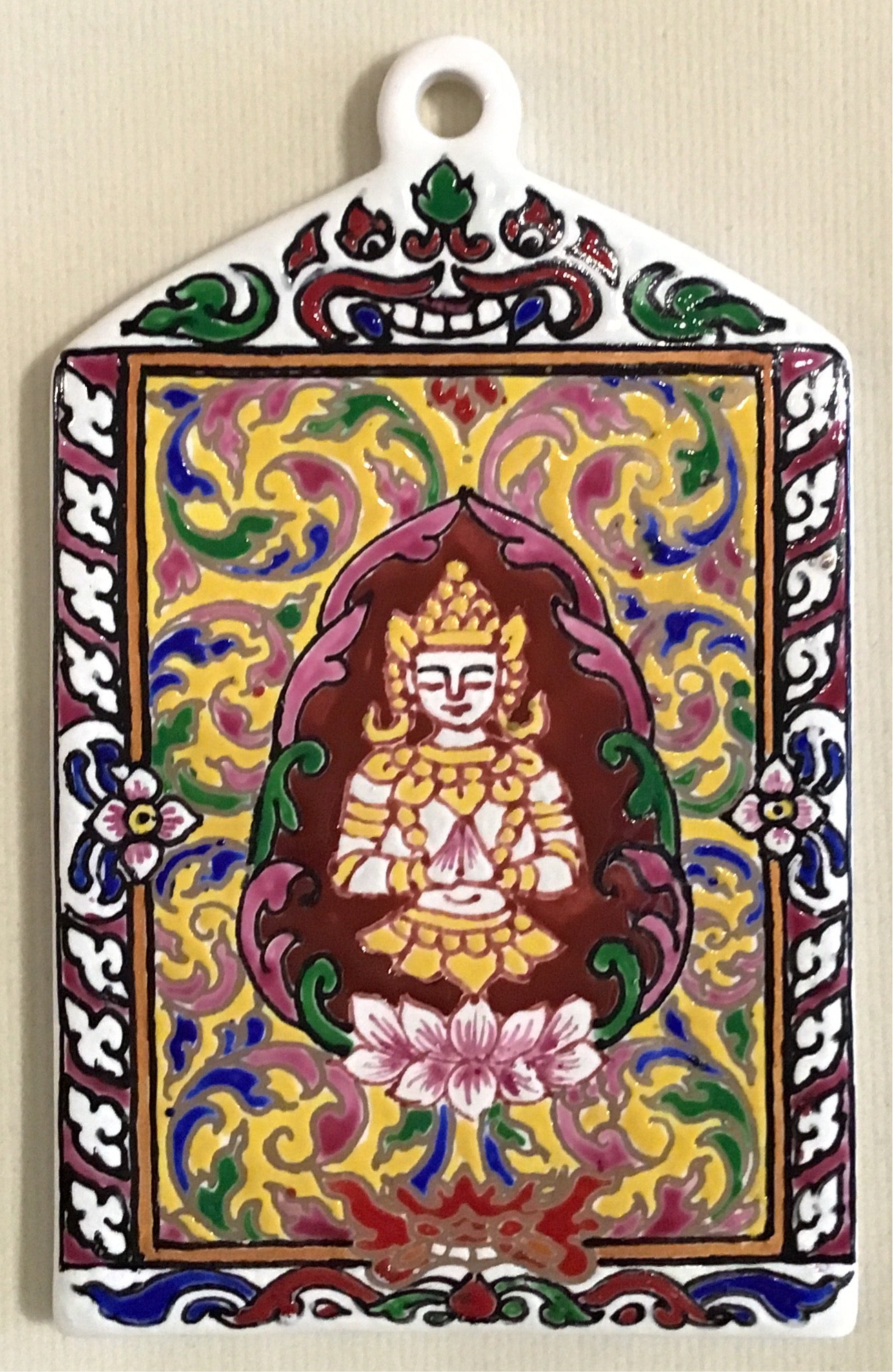 This handpainted ceramic piece is crafted by a skilled Benjarong artisan and will be delivered following an exhibition, making it a unique and valuable addition to your collection.